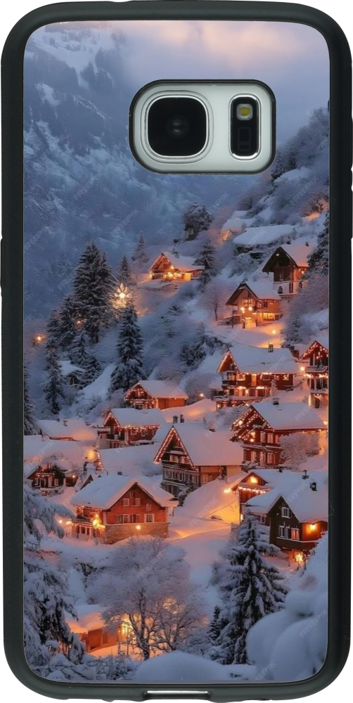 Coque Samsung Galaxy S7 - Silicone rigide noir Winter 25 Winter snowy village