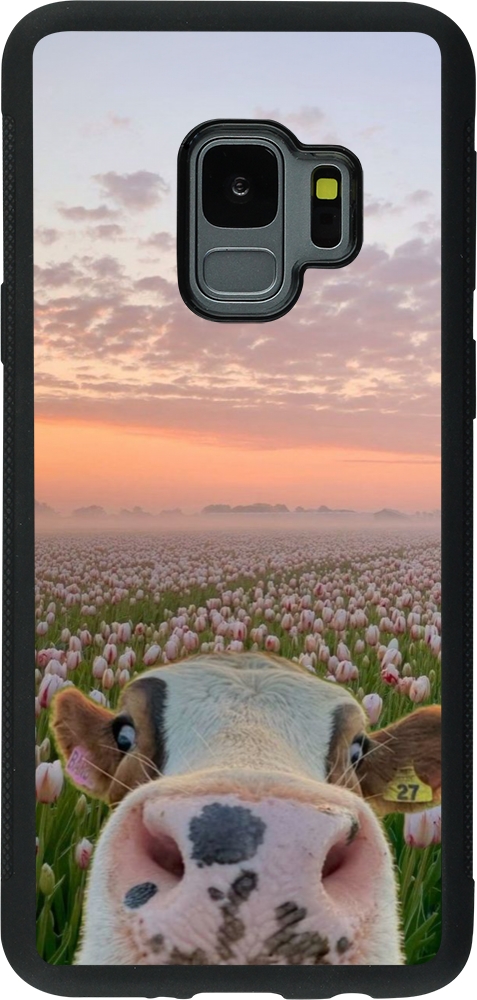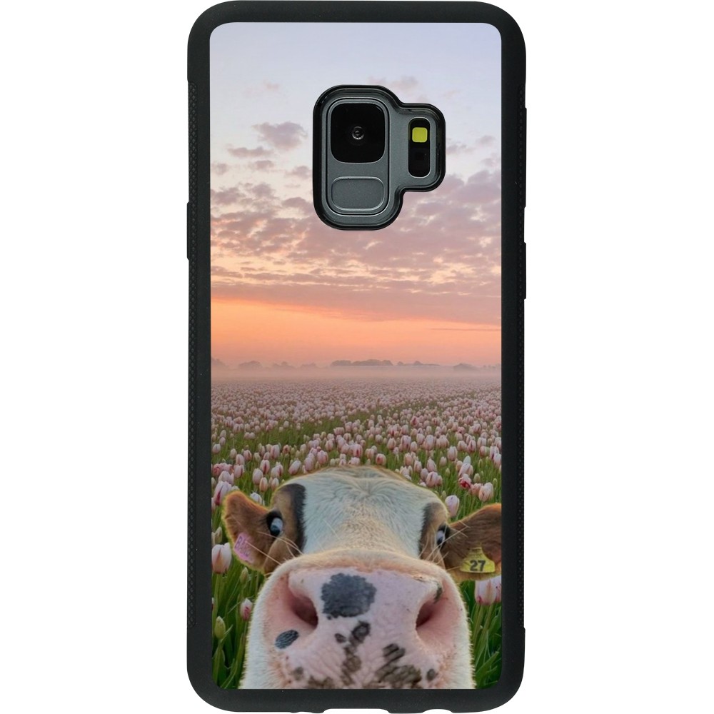 Coque Samsung Galaxy S9 - Silicone rigide noir Cow with tulips Spring 2026