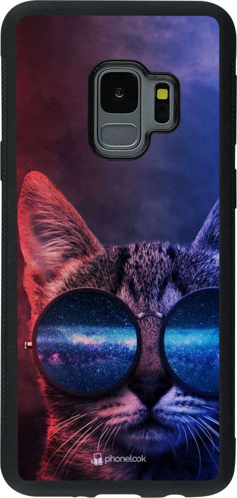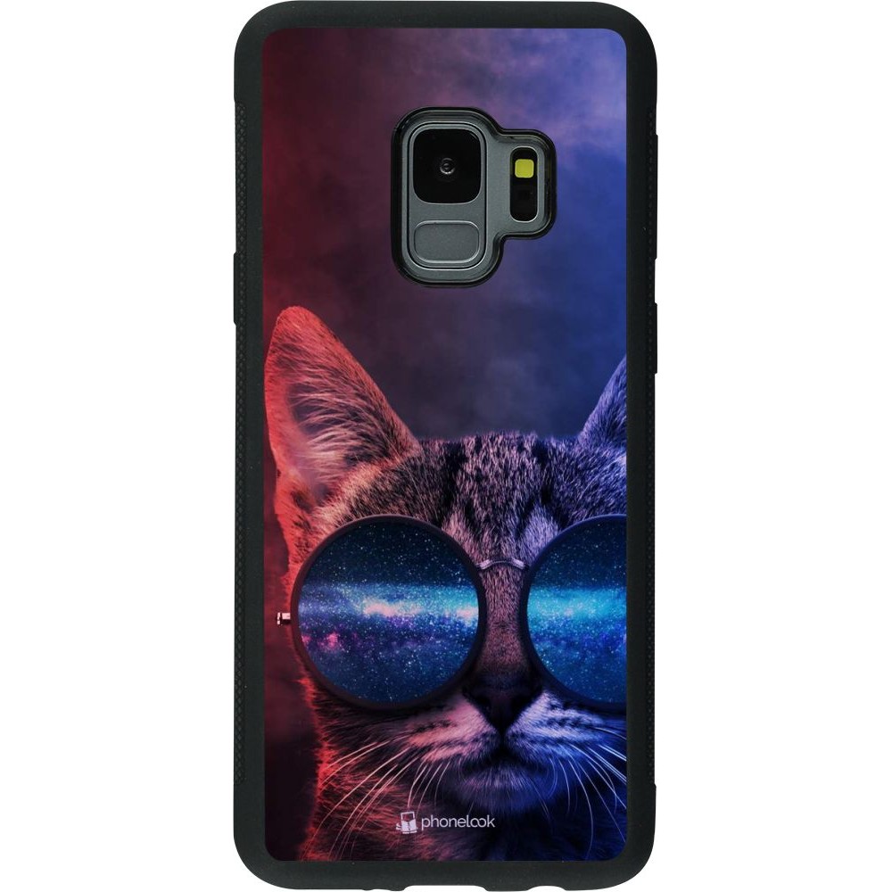 Coque Samsung Galaxy S9 - Silicone rigide noir Red Blue Cat Glasses