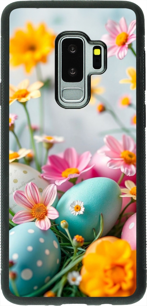 Coque Samsung Galaxy S9+ - Silicone rigide noir Easter 2026 Eggs with flowers