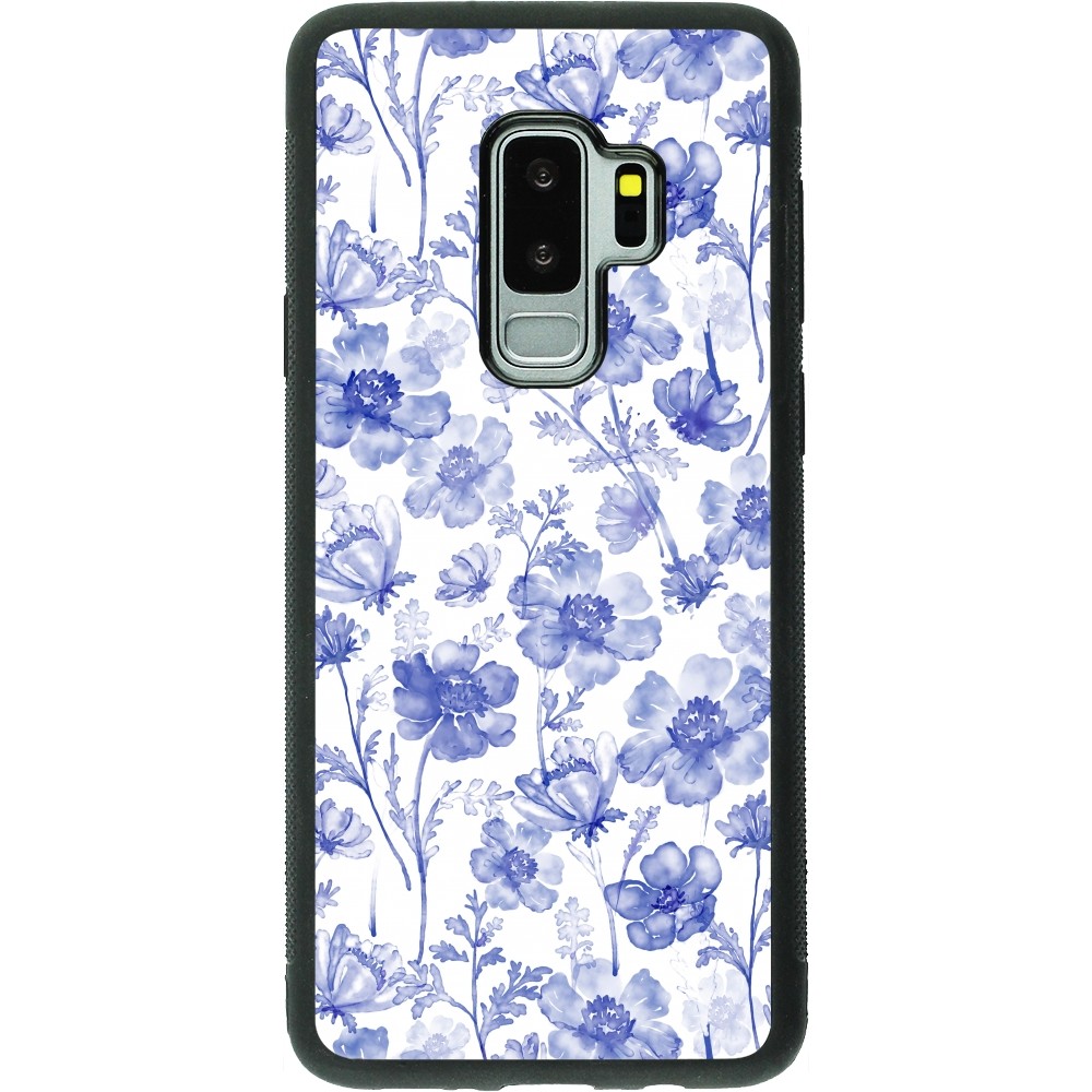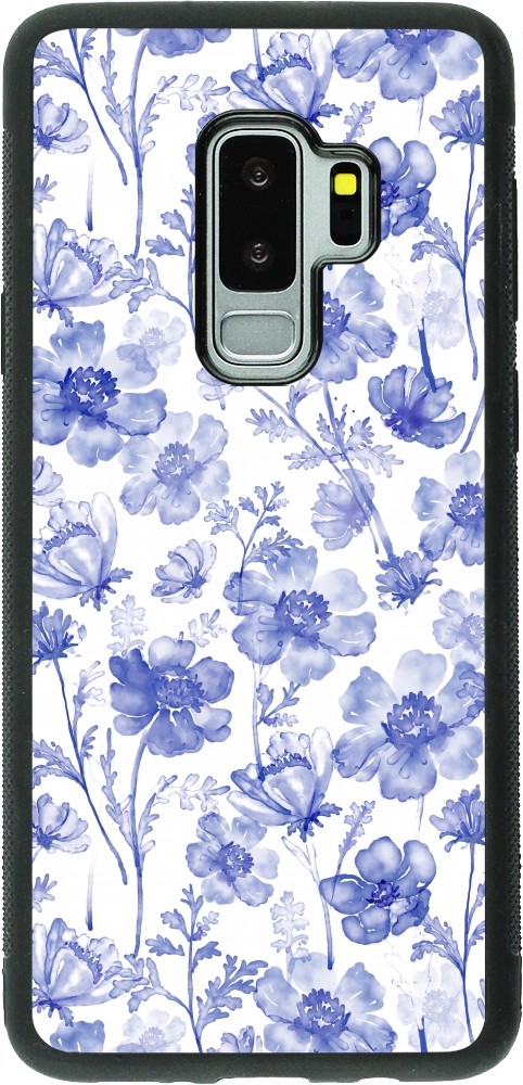 Coque Samsung Galaxy S9+ - Silicone rigide noir Spring 23 watercolor blue flowers