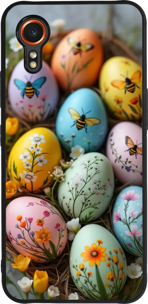 Coque Samsung Galaxy XCover 7 - Silicone rigide noir Easter 2026 Eggs with bees