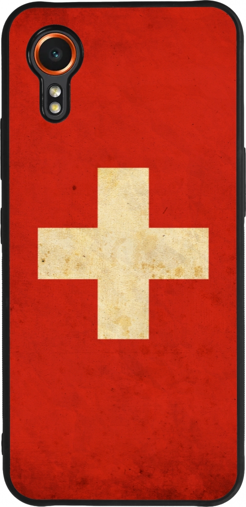 Coque Samsung Galaxy XCover 7 - Silicone rigide noir Vintage Flag SWISS