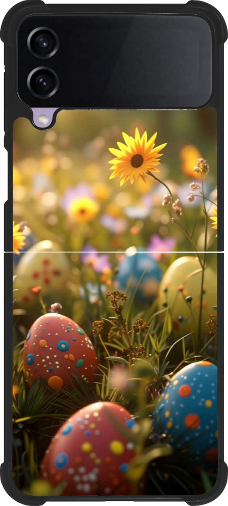 Coque Samsung Galaxy Z Flip3 5G - Silicone rigide noir Easter 2026 Decorated eggs