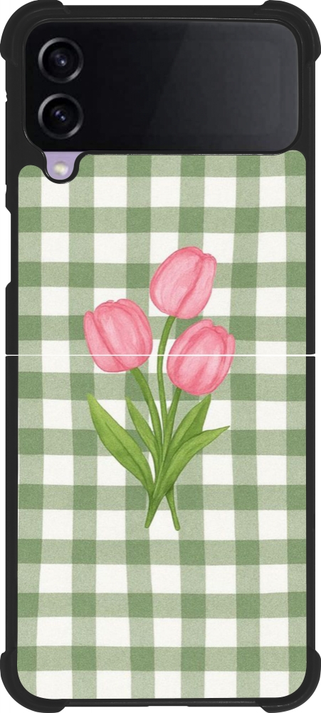 Coque Samsung Galaxy Z Flip3 5G - Silicone rigide noir Green vichy tulips 2026