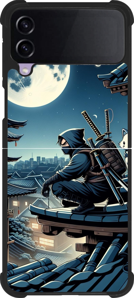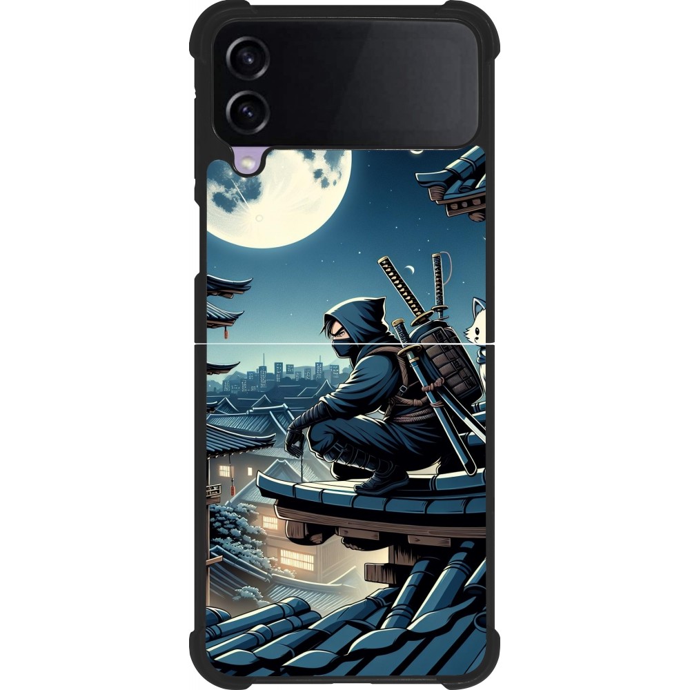 Coque Samsung Galaxy Z Flip3 5G - Silicone rigide noir Ninja sous la lune
