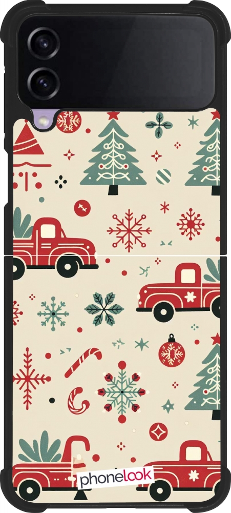 Coque Samsung Galaxy Z Flip3 5G - Silicone rigide noir Noël 2024 Camion Sapin