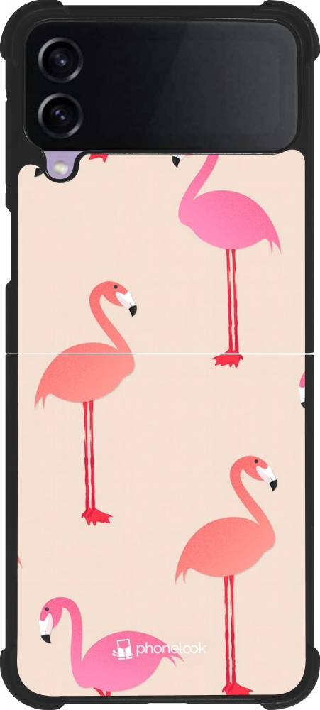 Coque Samsung Galaxy Z Flip3 5G - Silicone rigide noir Pink Flamingos Pattern