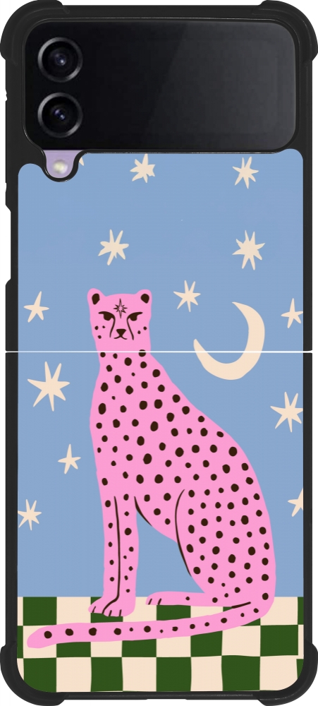 Coque Samsung Galaxy Z Flip3 5G - Silicone rigide noir Pink leopard with stars 2026