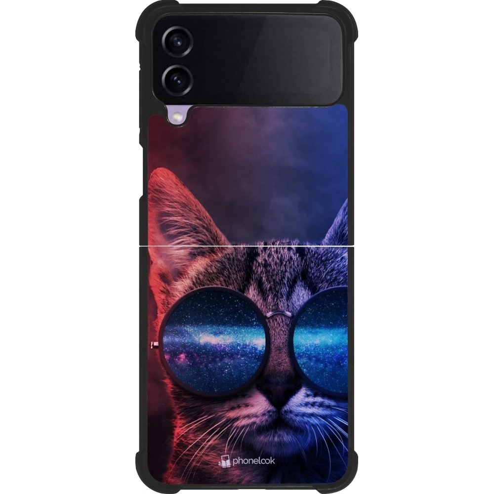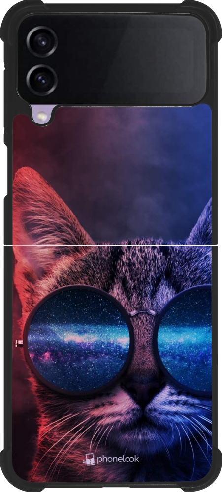 Coque Samsung Galaxy Z Flip3 5G - Silicone rigide noir Red Blue Cat Glasses