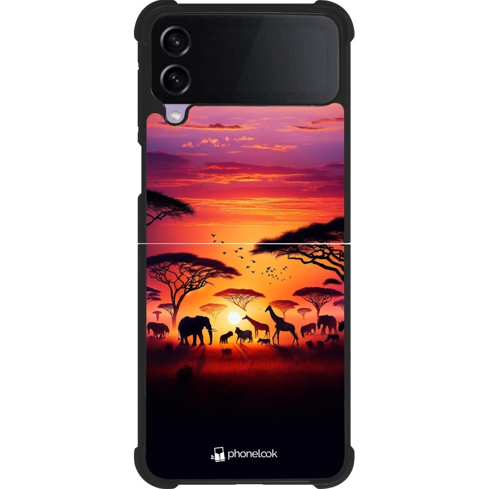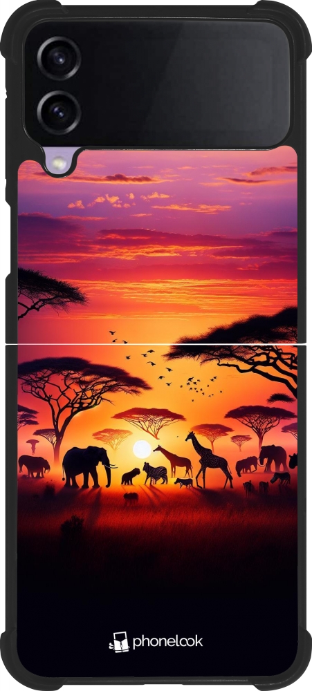 Coque Samsung Galaxy Z Flip3 5G - Silicone rigide noir Safari sunset wildlife