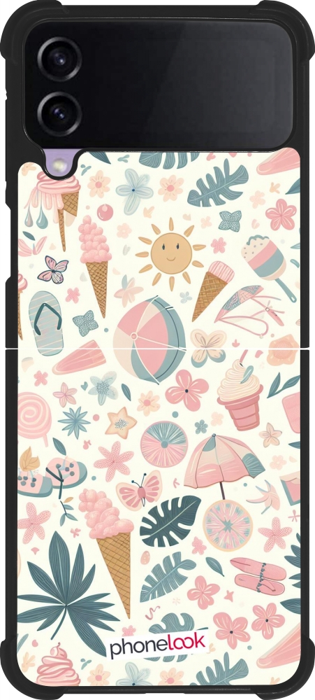 Coque Samsung Galaxy Z Flip3 5G - Silicone rigide noir Summer Pink Pattern