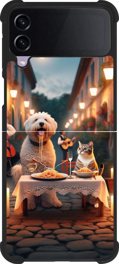 Coque Samsung Galaxy Z Flip3 5G - Silicone rigide noir Valentine 2024 Dog & Cat Candlelight