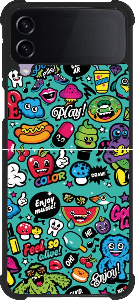 Coque Samsung Galaxy Z Flip4 - Silicone rigide noir Cartoons old school