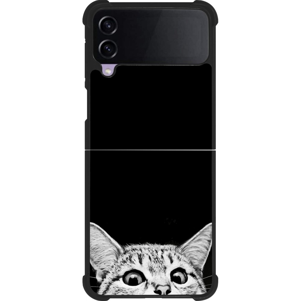 Coque Samsung Galaxy Z Flip4 - Silicone rigide noir Cat Looking Up Black