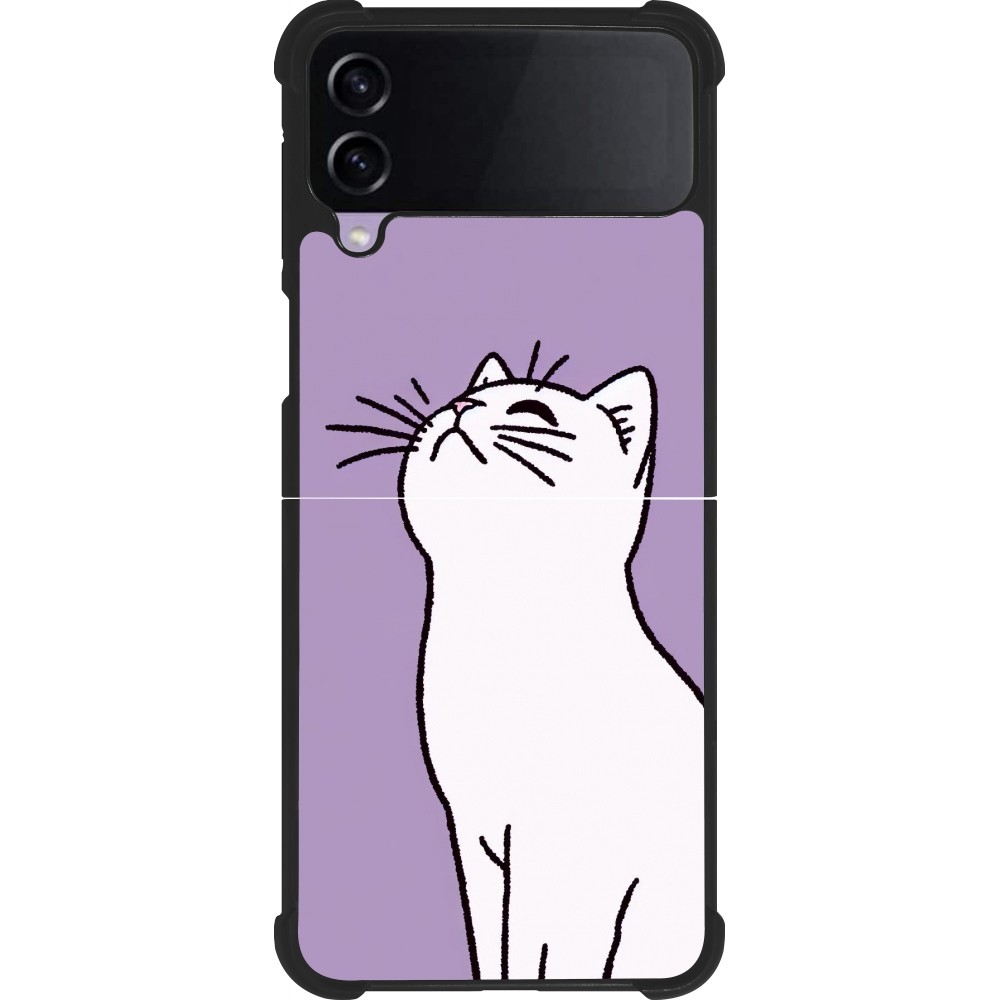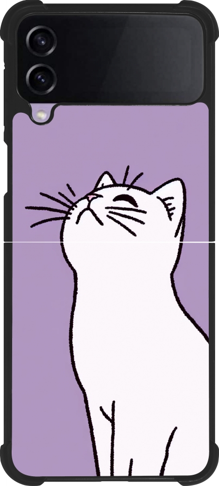 Coque Samsung Galaxy Z Flip4 - Silicone rigide noir Chat sur fond violet