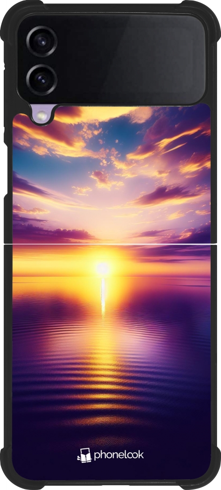Coque Samsung Galaxy Z Flip4 - Silicone rigide noir Coucher soleil jaune violet