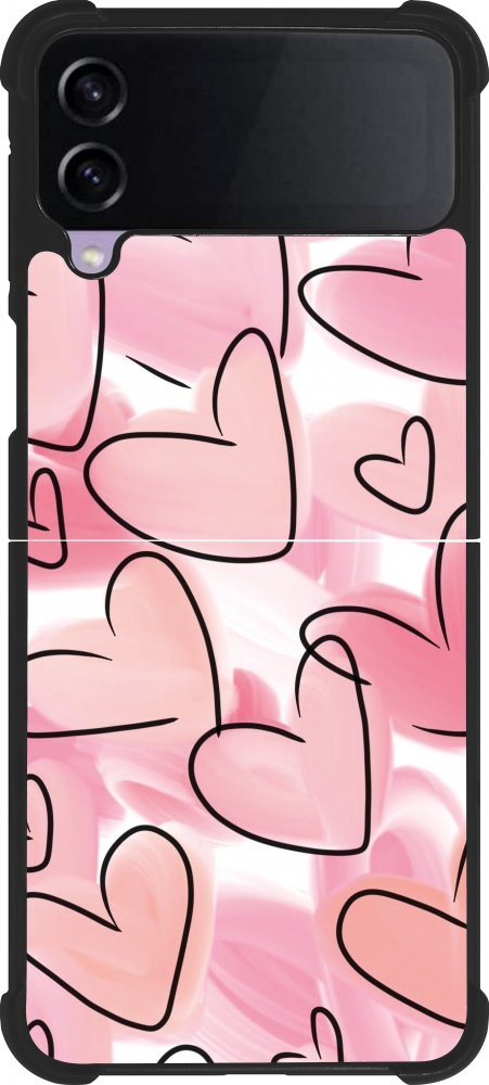 Coque Samsung Galaxy Z Flip4 - Silicone rigide noir Easter 2023 pink hearts
