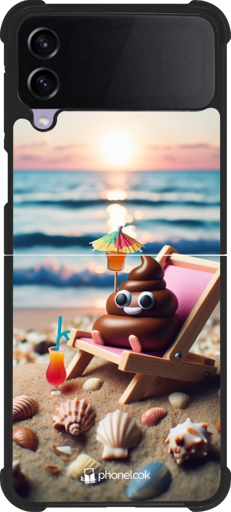 Coque Samsung Galaxy Z Flip4 - Silicone rigide noir Emoji caca sur chaise longue