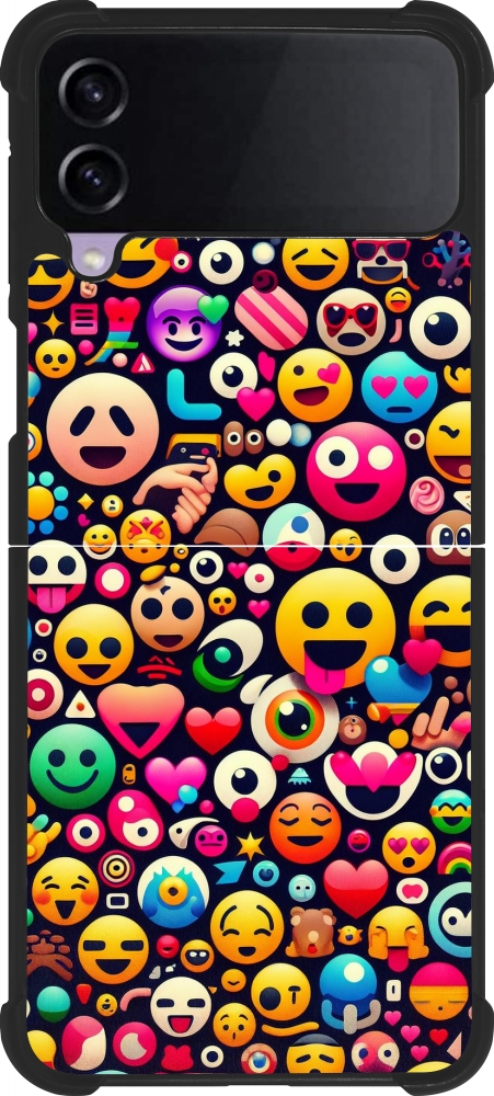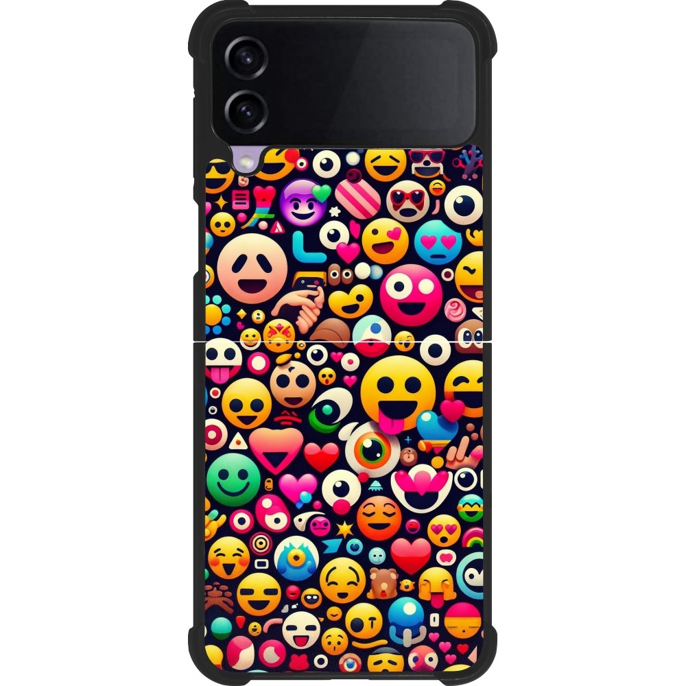 Coque Samsung Galaxy Z Flip4 - Silicone rigide noir Emoji Mix Color