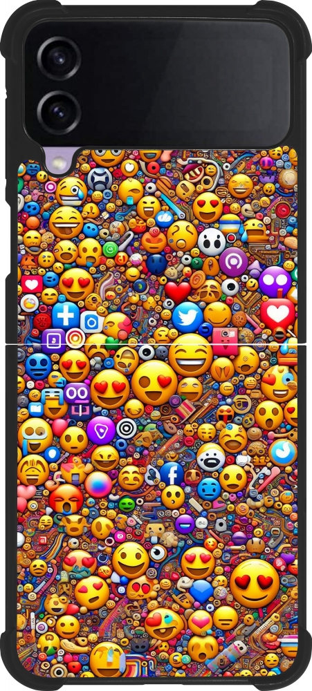 Coque Samsung Galaxy Z Flip4 - Silicone rigide noir Emoji mixed