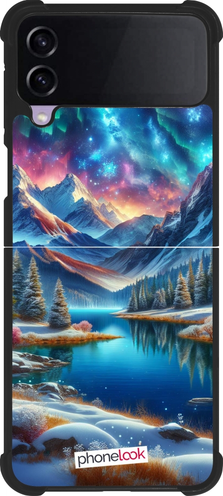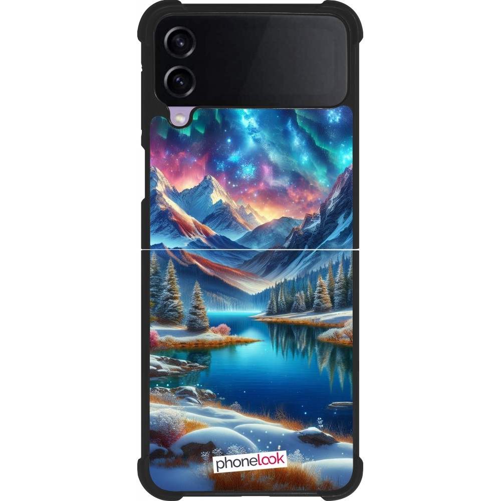 Coque Samsung Galaxy Z Flip4 - Silicone rigide noir Fantasy Mountain Lake Sky Stars