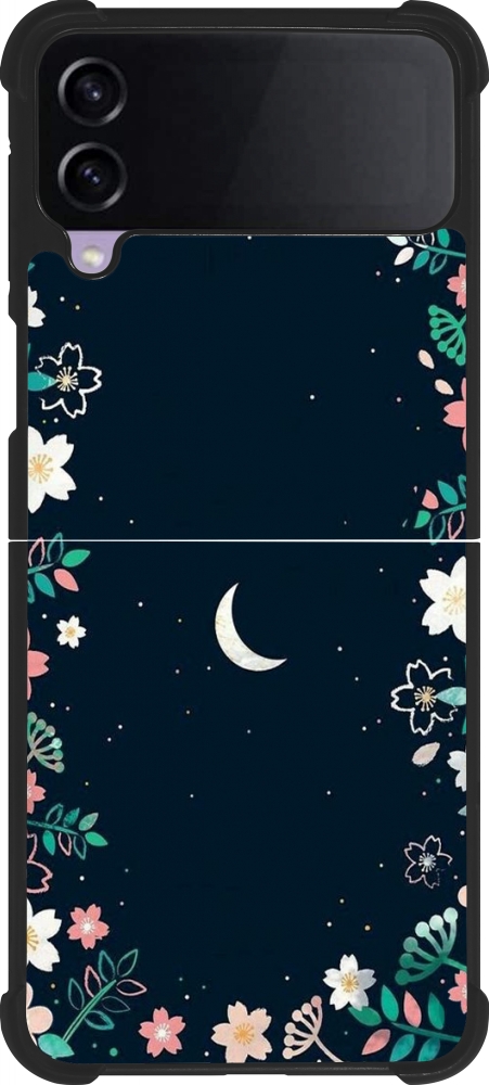 Coque Samsung Galaxy Z Flip4 - Silicone rigide noir Flowers space
