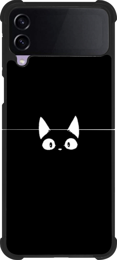 Coque Samsung Galaxy Z Flip4 - Silicone rigide noir Funny cat on black