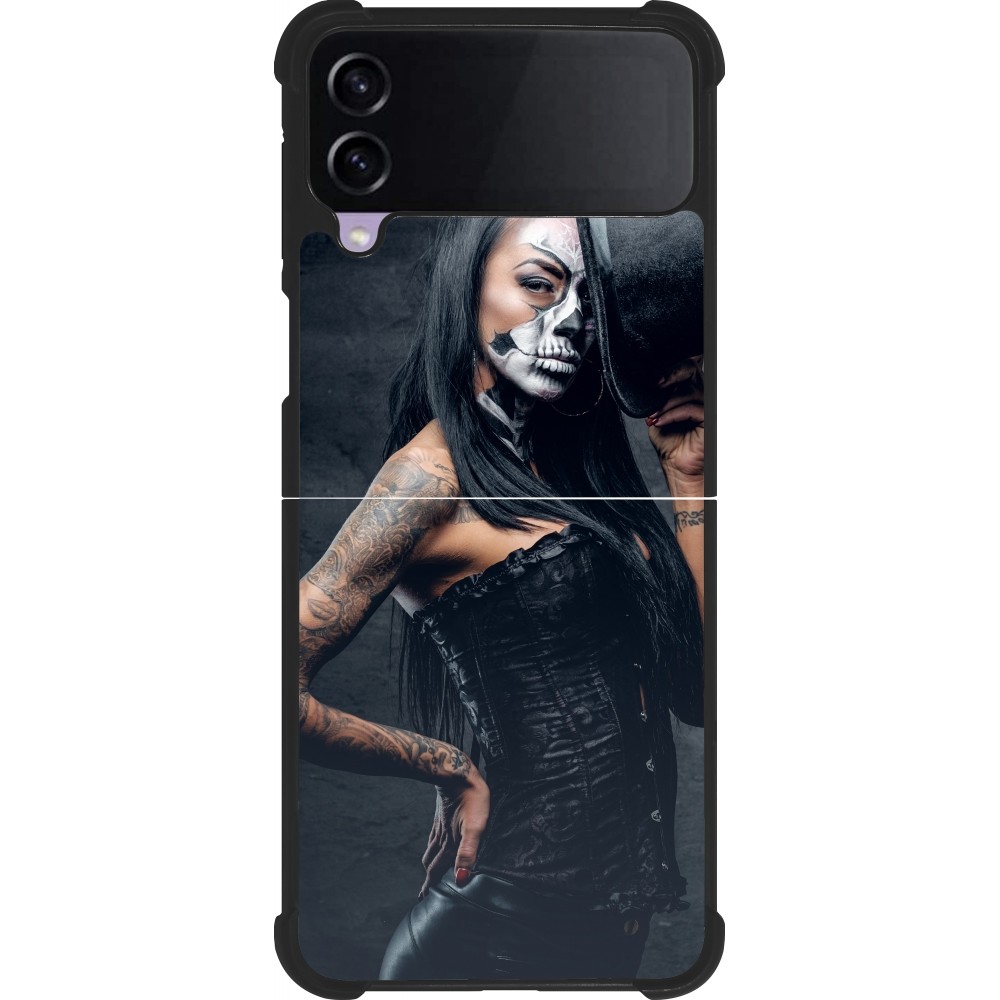 Coque Samsung Galaxy Z Flip4 - Silicone rigide noir Halloween 22 Tattooed Girl