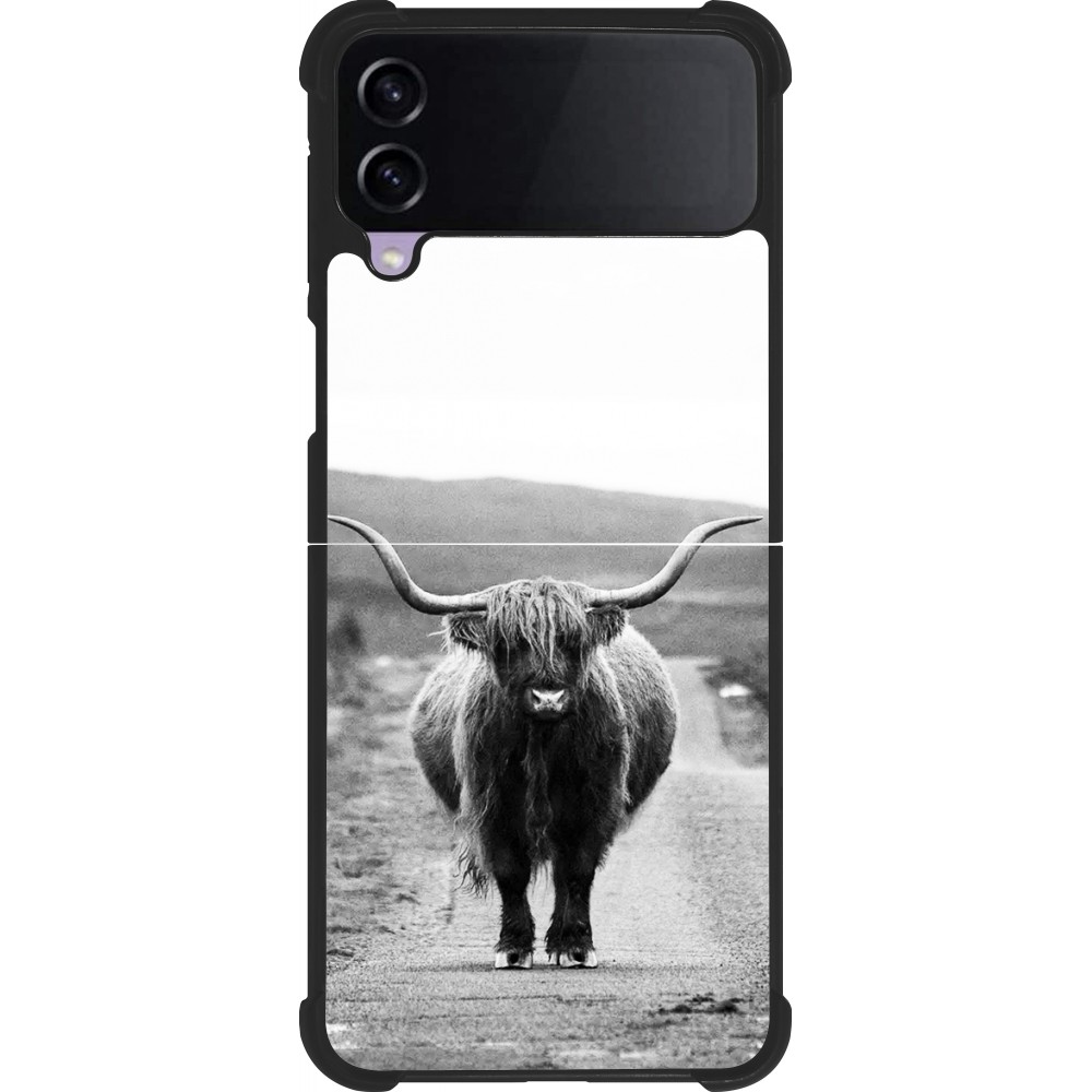 Coque Samsung Galaxy Z Flip4 - Silicone rigide noir Highland cattle
