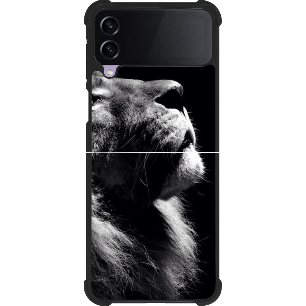 Coque Samsung Galaxy Z Flip4 - Silicone rigide noir Lion looking up