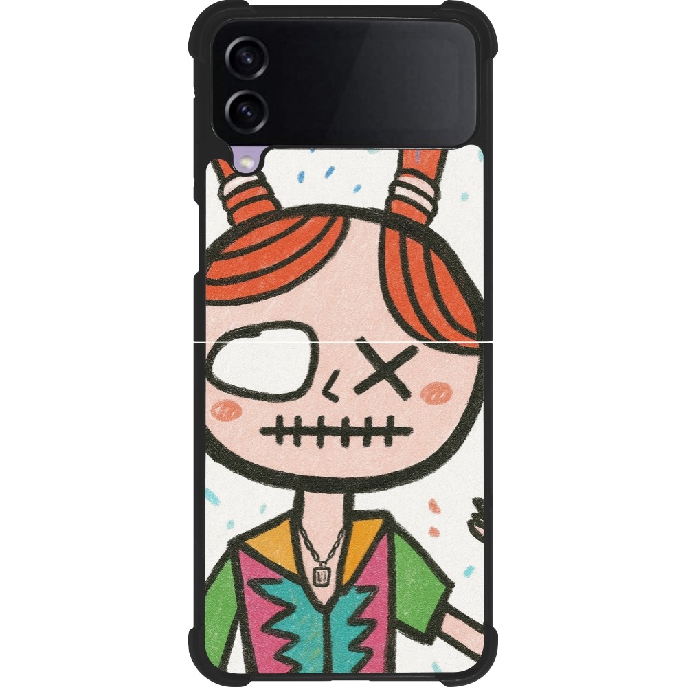 Coque Samsung Galaxy Z Flip4 - Silicone rigide noir Little Girl Sketch