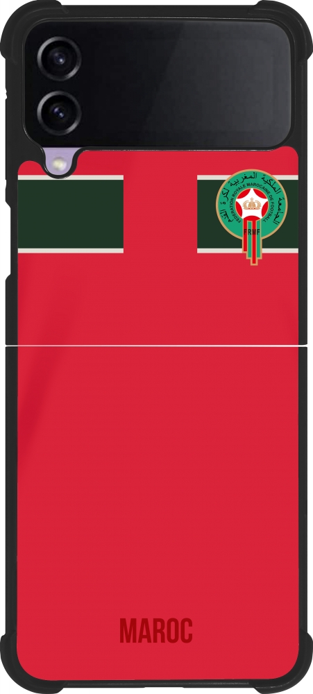 Coque Samsung Galaxy Z Flip4 - Silicone rigide noir Maillot de football Maroc 2022 personnalisable