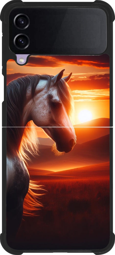 Coque Samsung Galaxy Z Flip4 - Silicone rigide noir Majestic Sunset Horse
