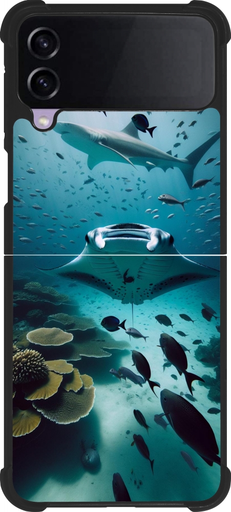Coque Samsung Galaxy Z Flip4 - Silicone rigide noir Manta Lagon Nettoyage