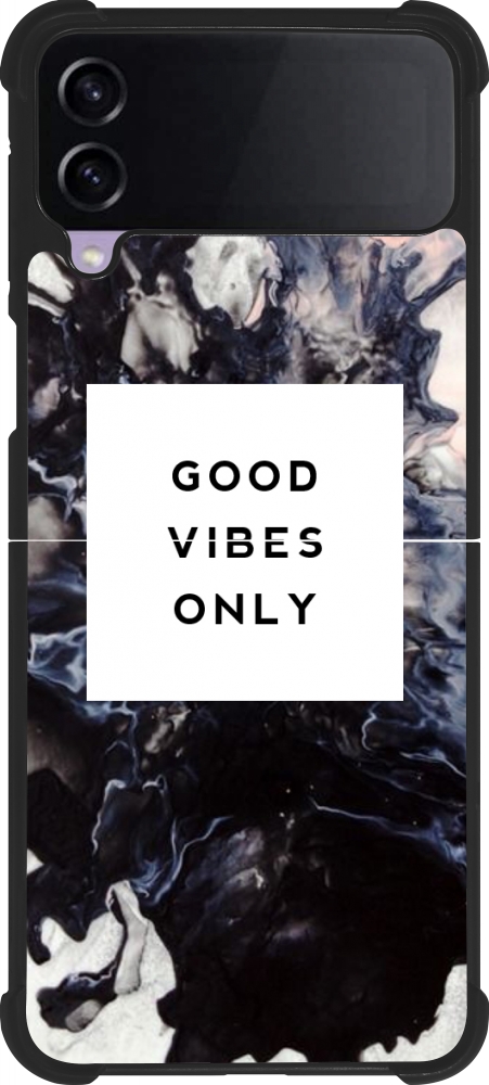 Coque Samsung Galaxy Z Flip4 - Silicone rigide noir Marble Good Vibes Only