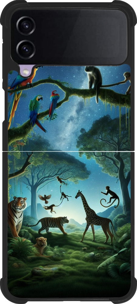 Coque Samsung Galaxy Z Flip4 - Silicone rigide noir Paradis des animaux exotiques