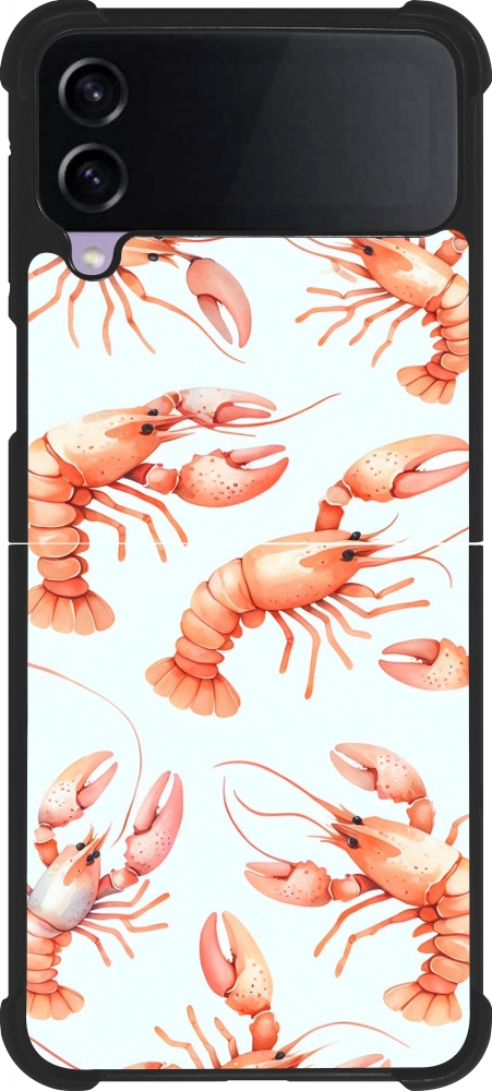 Coque Samsung Galaxy Z Flip4 - Silicone rigide noir Pattern de homards pastels