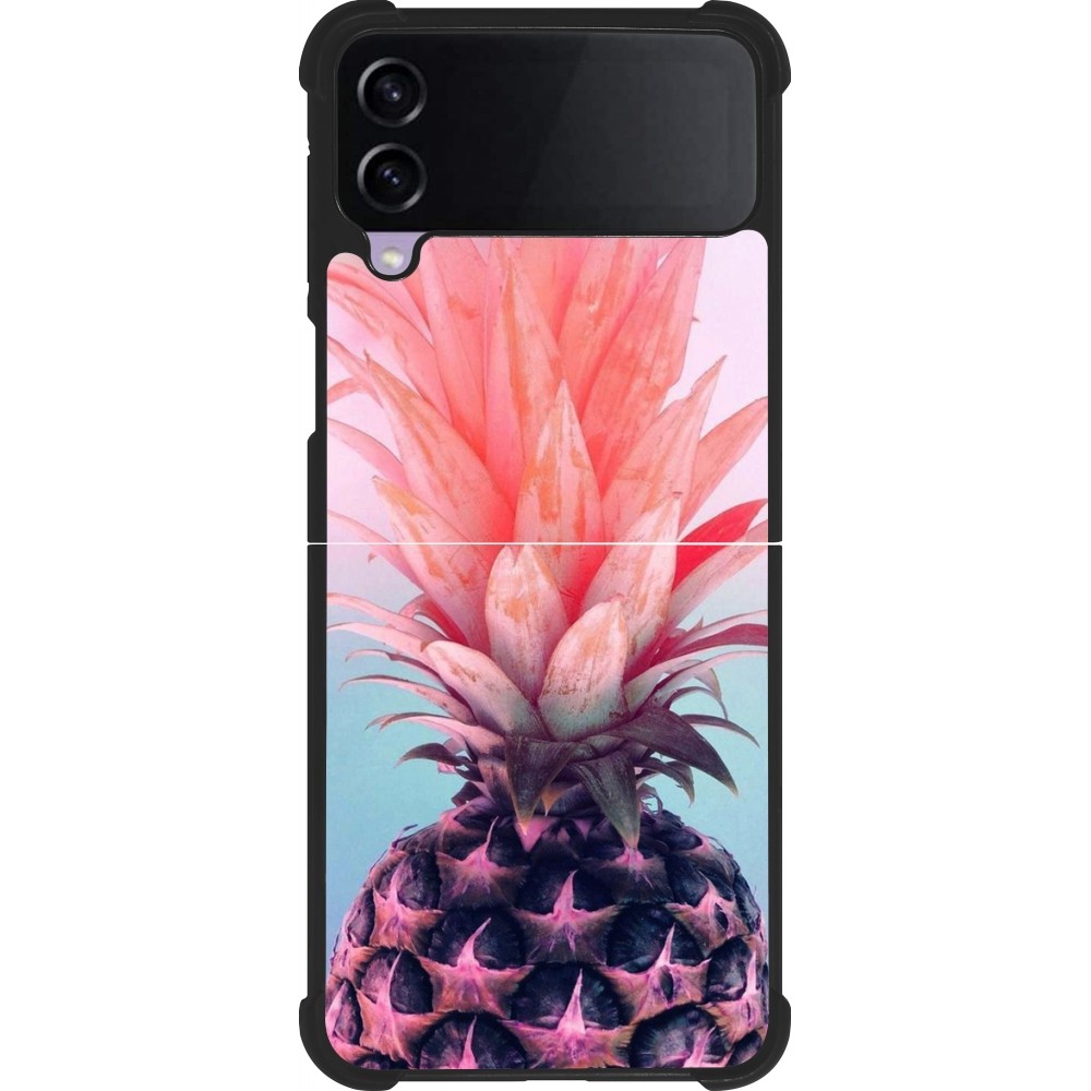 Coque Samsung Galaxy Z Flip4 - Silicone rigide noir Purple Pink Pineapple