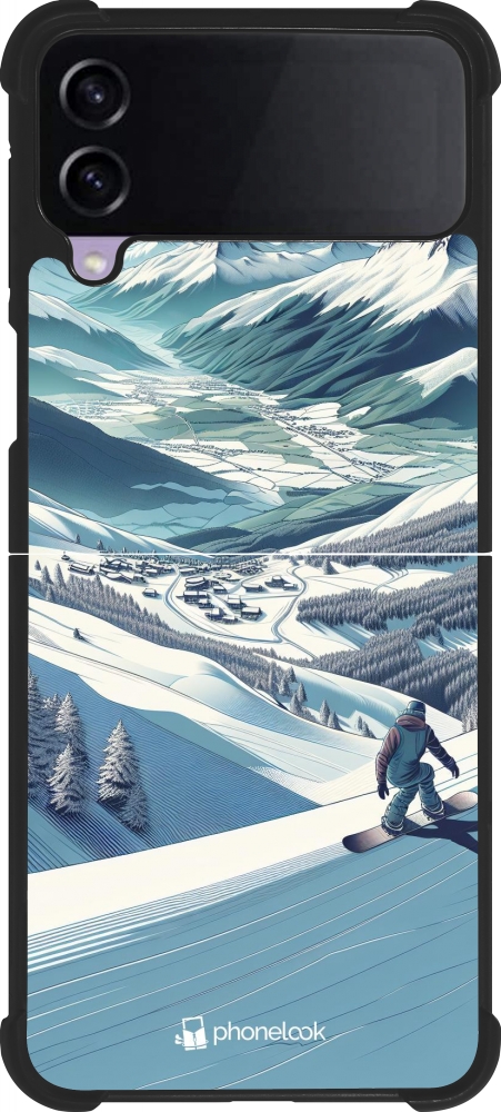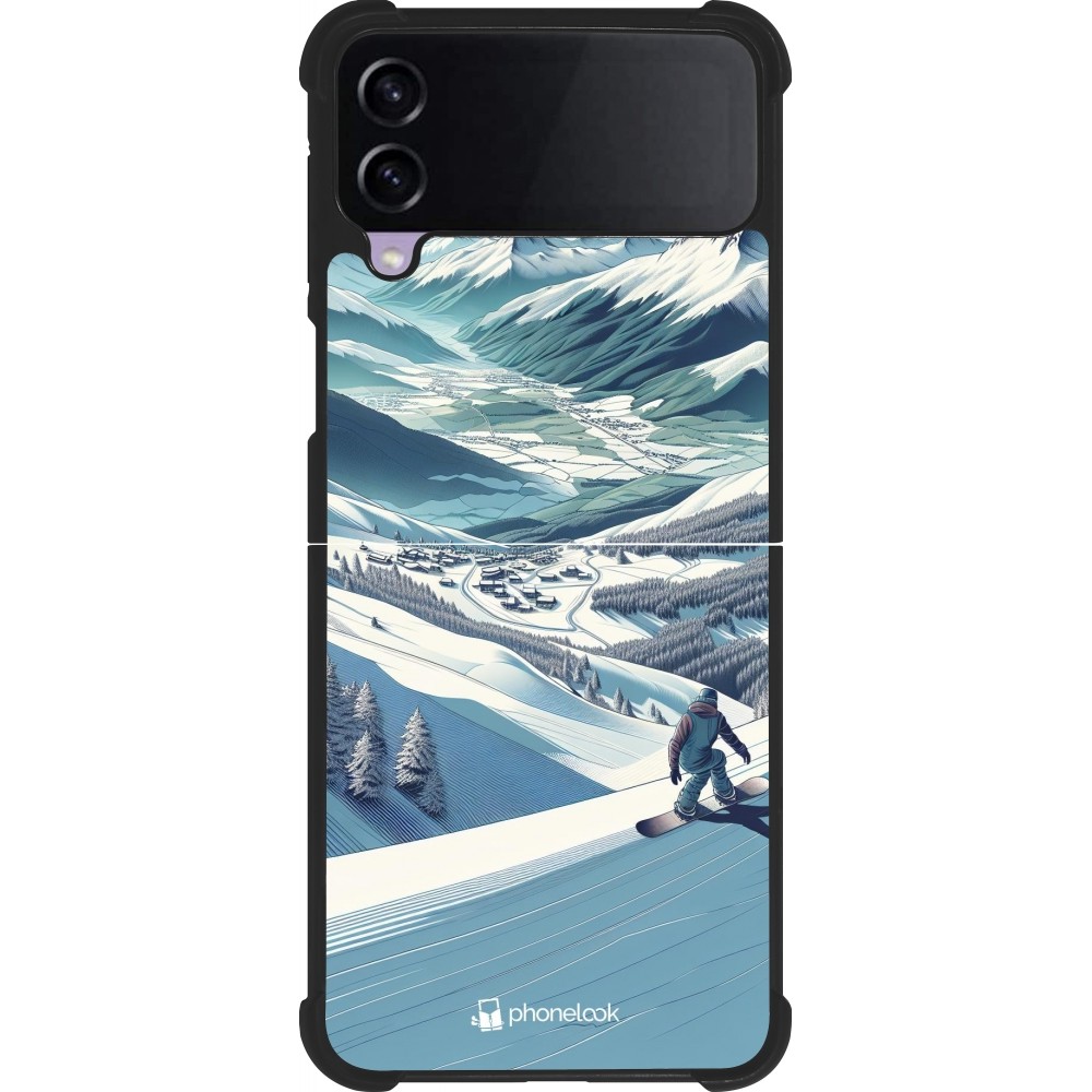 Coque Samsung Galaxy Z Flip4 - Silicone rigide noir Snowboarder Montagne