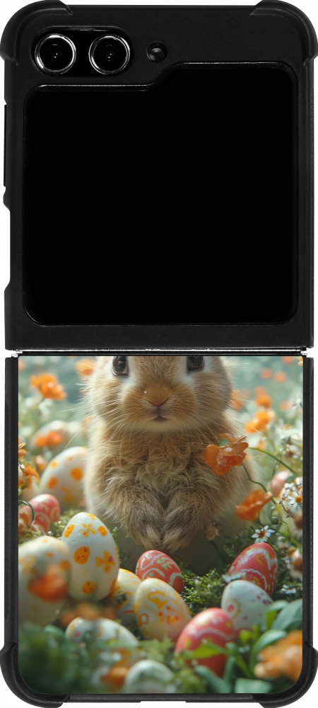 Coque Samsung Galaxy Z Flip5 - Silicone rigide noir Easter 2026 Rabbit in the garden