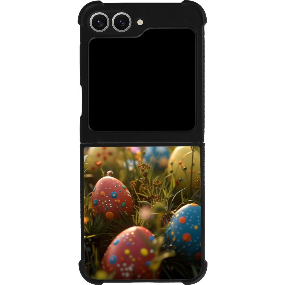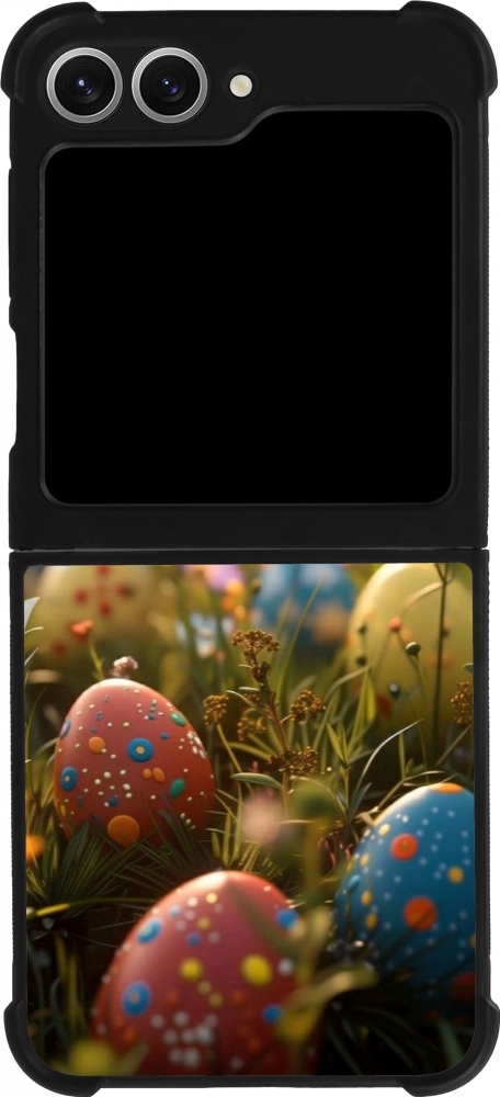 Coque Samsung Galaxy Z Flip6 - Silicone rigide noir Easter 2026 Decorated eggs