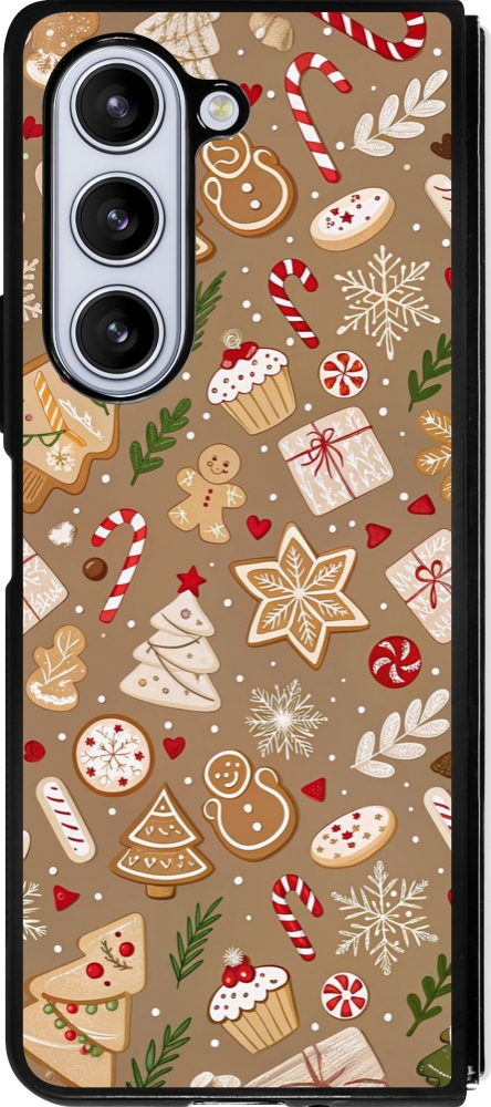Coque Samsung Galaxy Z Fold5 - Silicone rigide noir Christmas 25 Pattern Ginger Cookie