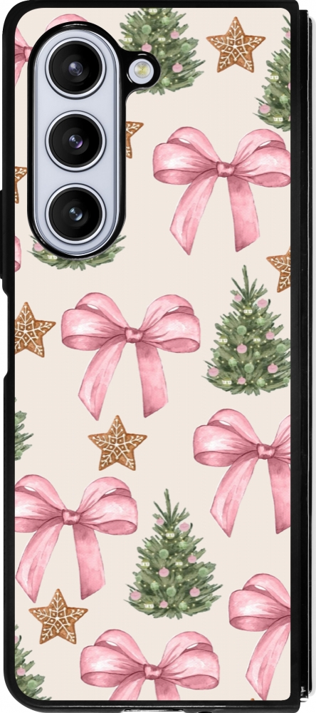 Coque Samsung Galaxy Z Fold5 - Silicone rigide noir Christmas 25 Vintage Ribbons