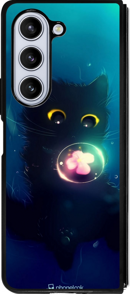Coque Samsung Galaxy Z Fold5 - Silicone rigide noir Cute Cat Bubble