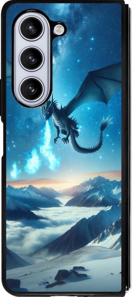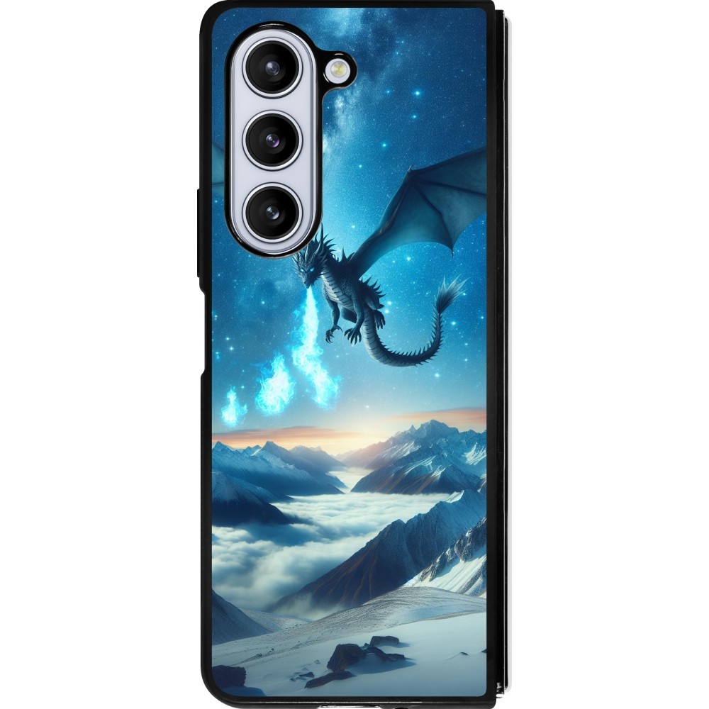 Coque Samsung Galaxy Z Fold5 - Silicone rigide noir Dragon nocturne montagne