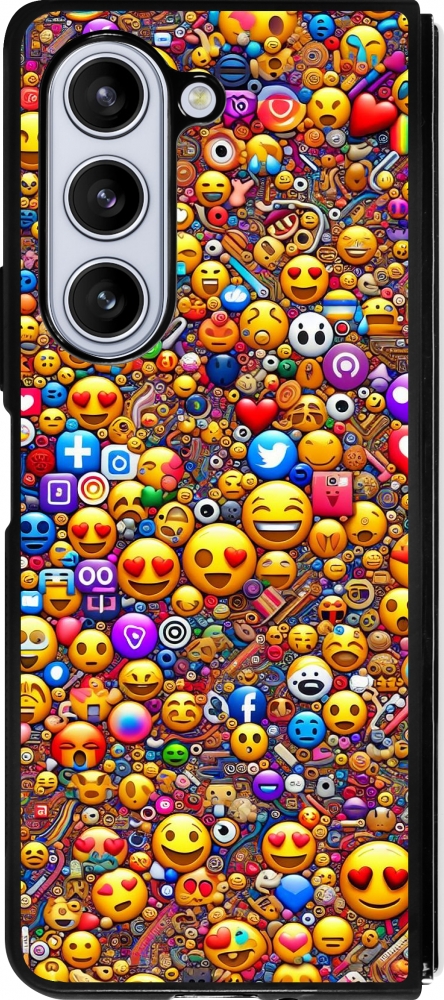 Coque Samsung Galaxy Z Fold5 - Silicone rigide noir Emoji mixed