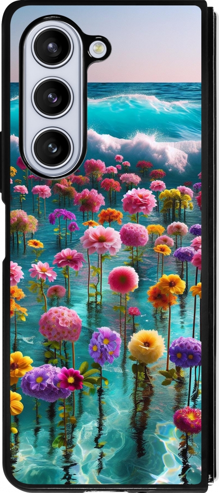 Coque Samsung Galaxy Z Fold5 - Silicone rigide noir Flower sea waves