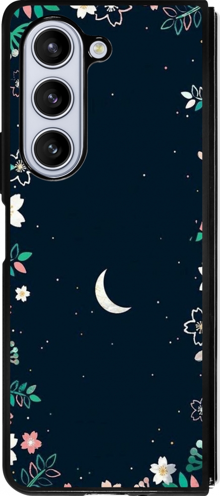 Coque Samsung Galaxy Z Fold5 - Silicone rigide noir Flowers space