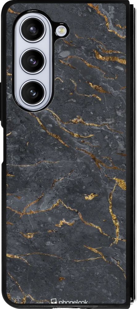 Coque Samsung Galaxy Z Fold5 - Silicone rigide noir Grey Gold Marble